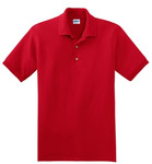 5.6-ounce, 50 cotton/50 DryBlend poly Moisture wicking properties Tag-free label Contoured welt knit collar and cuffs 3-button clean-finished placket with reinforced bottom box Wood-tone buttons Double-needle hem Adult Sizes: S-5XL